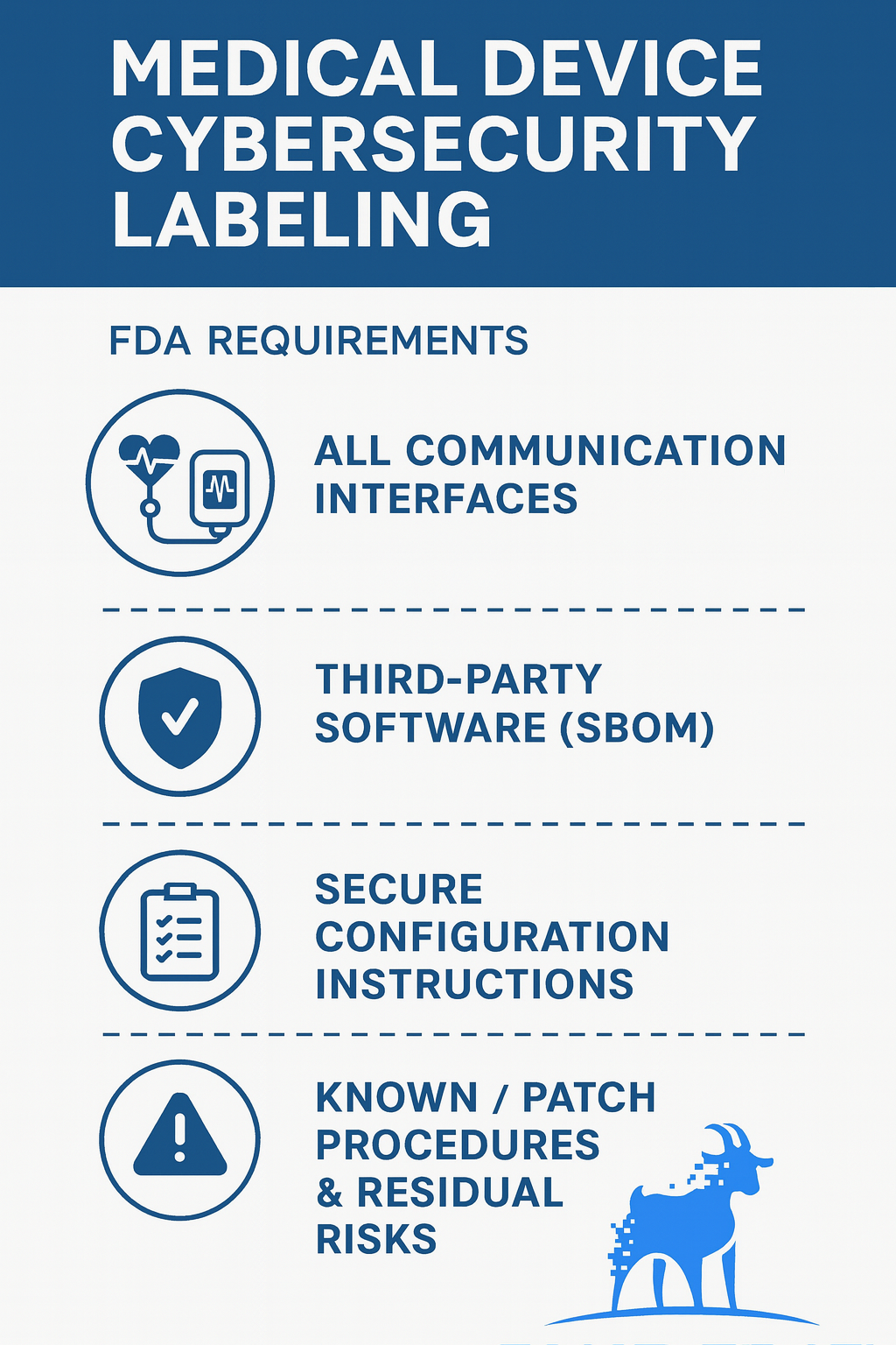 The FDA’s 2025 guidance, Cybersecurity in Medical Devices: Quality System Considerations and Content of Premarket Submissions, makes this point clear: inadequate cybersecurity labeling can render a device misbranded under the FD&C Act (§502(f), §502(j)) and put patient safety at risk. For manufacturers, proper cybersecurity labeling is both a compliance requirement and a trust-building tool for hospitals, clinicians, and patients.